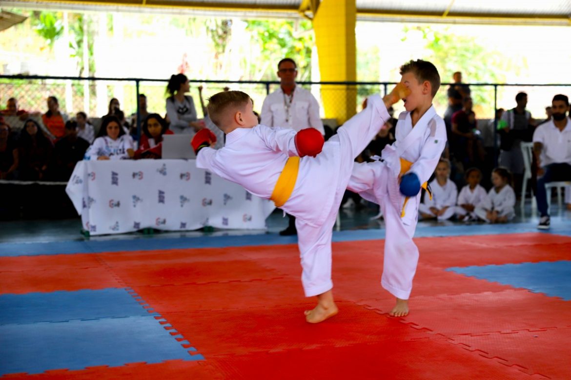 Uma centena de karatecas de Guabiruba participaram no último dia 30 de abril da 1ª copa Rogério Schaefer de Karatê. O evento foi realizado no ginásio da escola Padre Germano Brandt, no Aymoré, Além de atletas, pais e membros da comunidade, estiveram presentes diversas autoridades, entre elas vereadores e o diretor de Esporte, Alfonso Sanceler Bernardi, que representou a pasta.