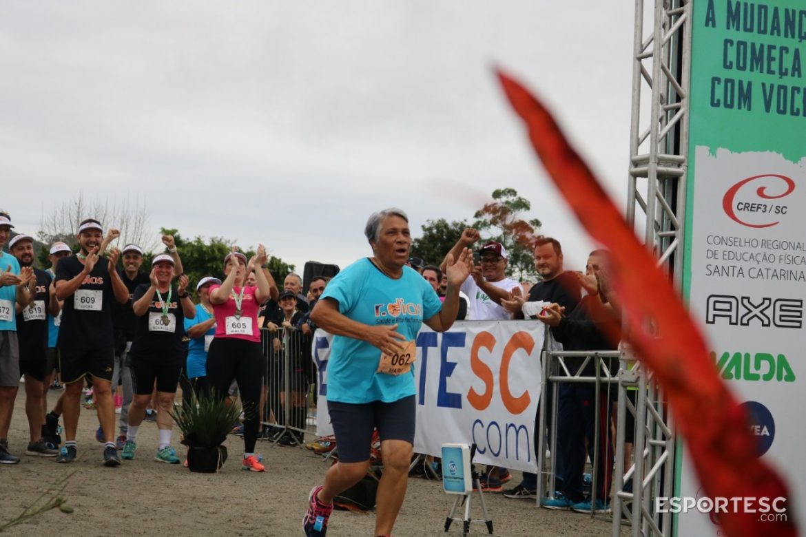 Já na pista, mais uma vez os corredores do Projeto Pernas Solidárias foram exemplos de superação. A mesma superação que teve Leandro Roza, 75 anos. Atleta de Doutor Pedrinho, ele foi o primeiro a ganhar a mandala dada ao participante de ao menos 6 etapas de um total de 16 do circuito de corridas, a de Brusque foi a oitava.