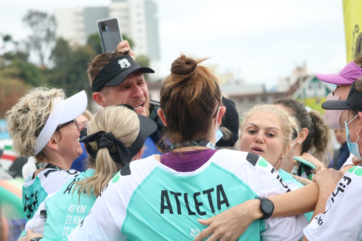 Co-organizador do evento ao lado da Fibra Fisio, Felipe Ristow, representante do Grupo de Corrida do Bay comemorou duplamente a chegada. Ele foi muito festejado ao completar a prova de 42k e também caiu em lágrimas ao lado de atletas da equipe. “Desde que voltei à Educação Física, sempre tive o sonho de deixar a corrida de rua, que é um esporte que amo, muito forte aqui em Brusque. No ano passado, comecei a treinar 12 pessoas para completar uma maratona, e não havia provas, todas foram canceladas. E eu tinha que entregar esse sonho para essas pessoas”, comentou, entre lágrimas.