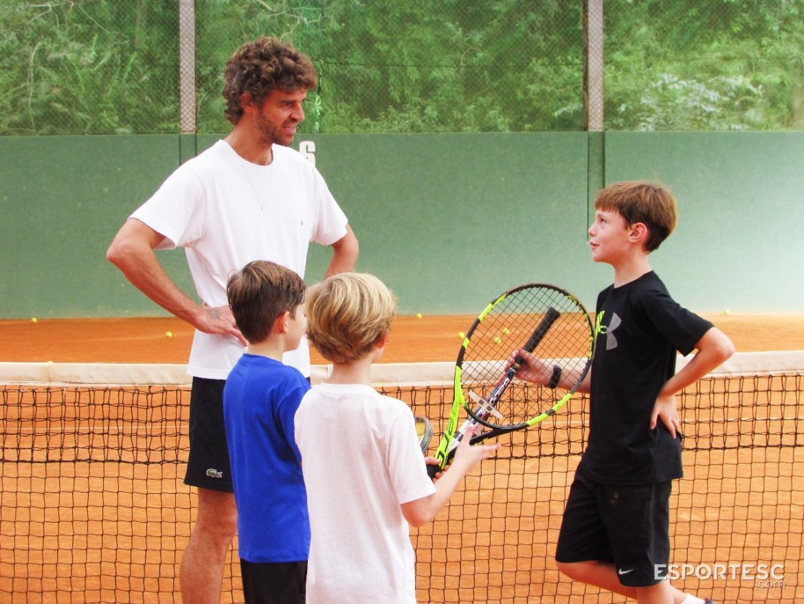 O principal nome da história do tênis nacional, Gustavo Kuerten, o Guga, esteve em Brusque nesta segunda-feira (11). O jogador que brilhou no fim da década de 1990 e início dos anos 200 com títulos importantes como o tricampeonato de Roland Garros, na França (1997, 2000 e 2001), fez uma visita surpresa à Sociedade Esportiva Bandeirante (SEB).