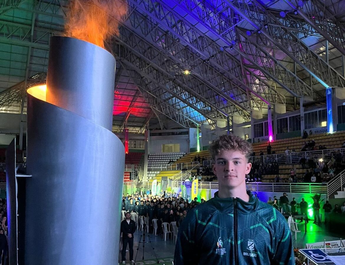 Selecionado pela Prefeitura de Brusque para conduzir a tocha olímpica durante o evento, Lucas protagonizou um dos momentos mais marcantes da noite. Diante do público que lotou a Arena, o jovem ciclista emocionou os presentes com sua participação simbólica, representando o esporte local em uma cerimônia que celebra o talento e a dedicação de atletas de todo o estado.