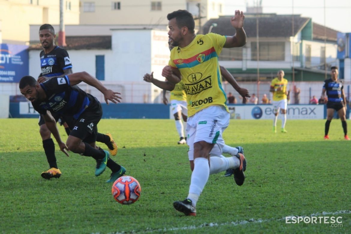 O Brusque deu o primeiro chute a gol aos 7 minutos, numa pancada de Jefferson Renan defendida por Belliato. Mas não demorou o time viu o Tubarão abrir 2 a 0 em 20 minutos.