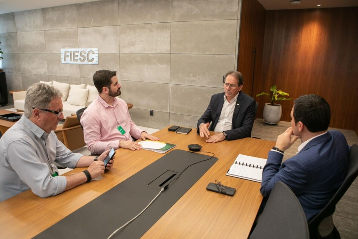 O Prefeito de Brusque, André Vechi, esteve em Florianópolis na quarta-feira (11) para retomar as negociações junto à FIESC sobre a possível aquisição do Complexo Esportivo do SESI. Acompanhado pelo presidente do Brusque Futebol Clube, Danilo Rezini, o prefeito reuniu-se com o presidente da FIESC, Mário Cézar Aguiar, e o superintendente do SESI, Fabrizio Pereira, para apresentar o interesse do município e discutir os próximos passos.
