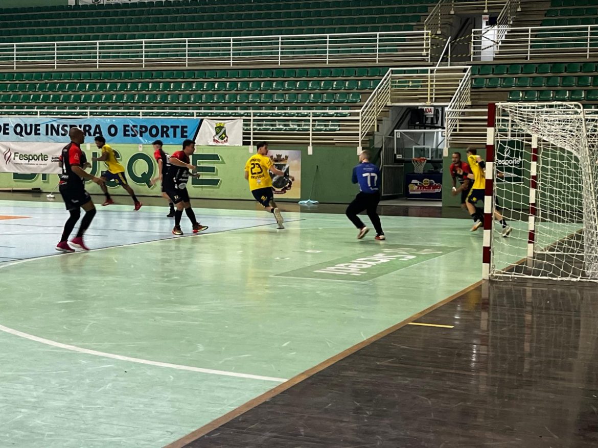 Equipe de handebol masculino se apresentou duas vezes nesta quinta-feira (2), na fase regional dos Jogos Abertos de Santa Catarina (JASC). O jogo de estreia, marcado por grande expectativa, se deu contra Blumenau, às 14h15, na Arena Brusque, palco da modalidade.